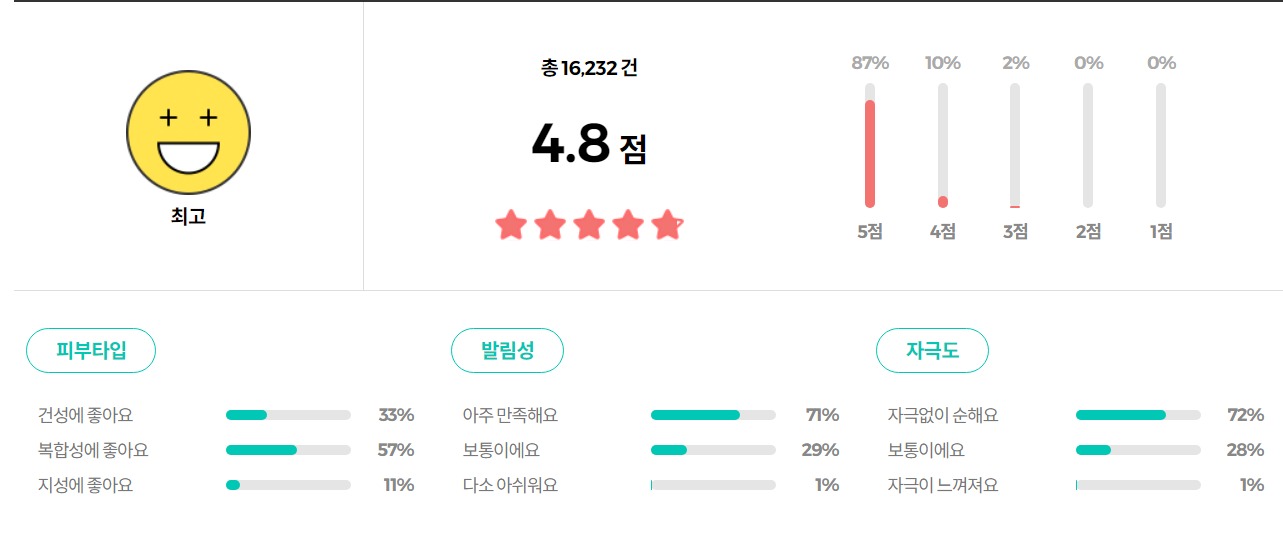 의심성분 18 free : 구달의 clear guide 기준으로 4가지 기능별 18개 의심성분을 무첨가하였습니다.