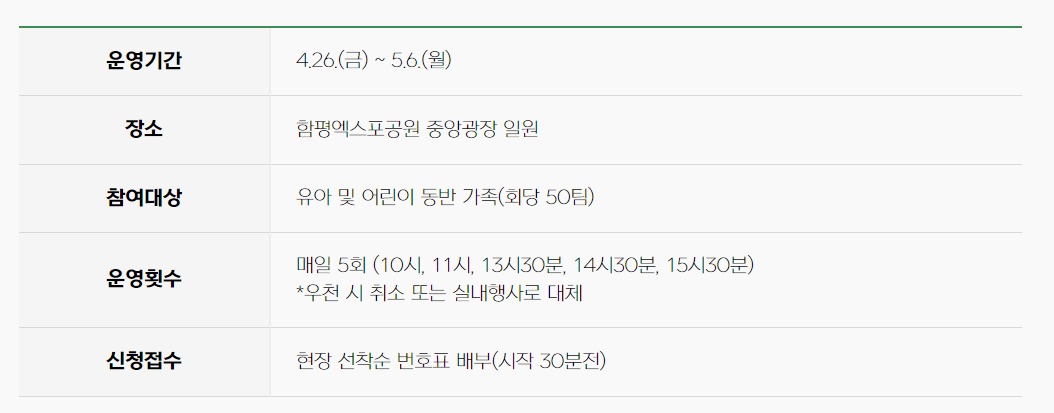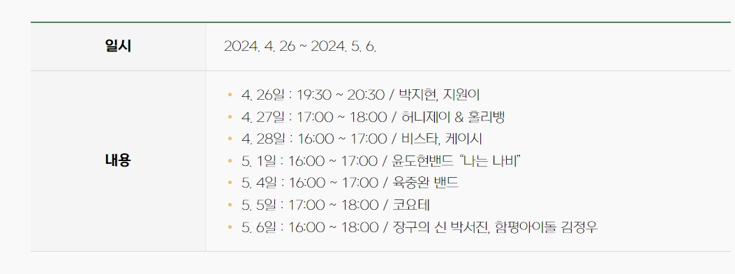 - 기간 : 2024.4.26.(금) ~ 2024. 5.6.(월) 11일간
