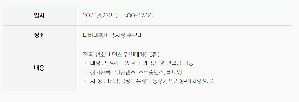 - 전국 청소년 댄스 경연대회